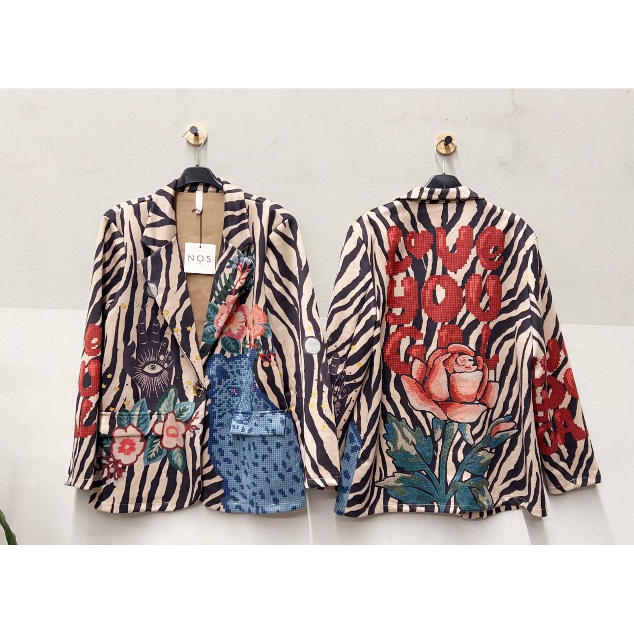 Make a bold statement with our Cosmic Love Suedette Blazer – where celestial magic meets striking zebra print. Crafted from soft suedette fabric, this blazer features a powerful mix of mystical motifs, vibrant florals, and a bold red “Love You” graphic on the back. The front showcases an all-seeing eye hand design, star details, and patchwork-style pops of blue, making it a true piece of wearable art.